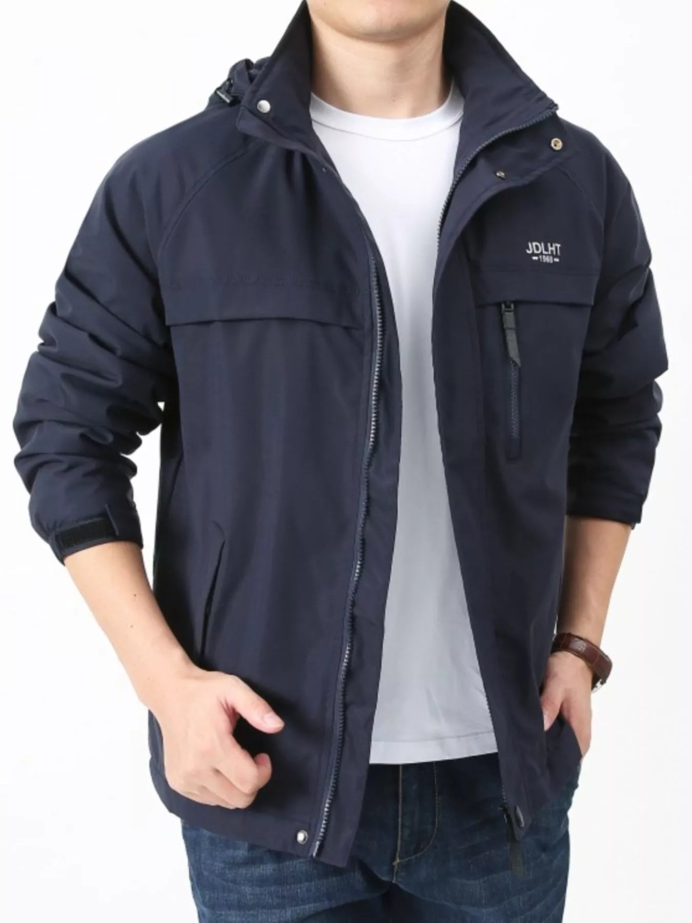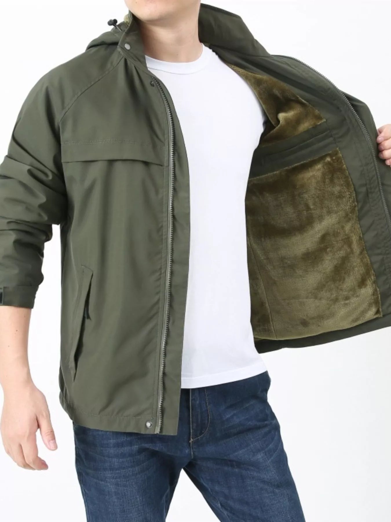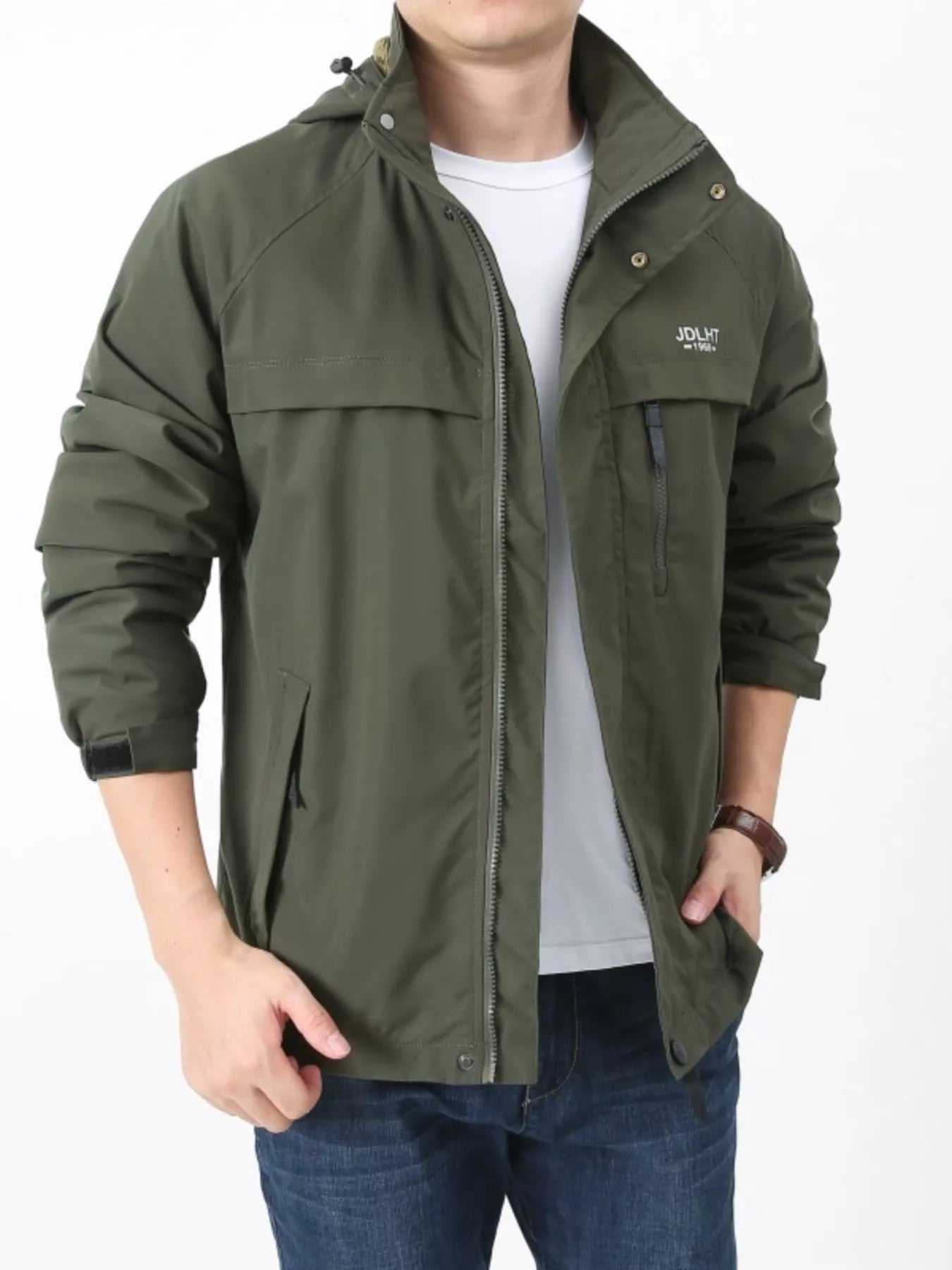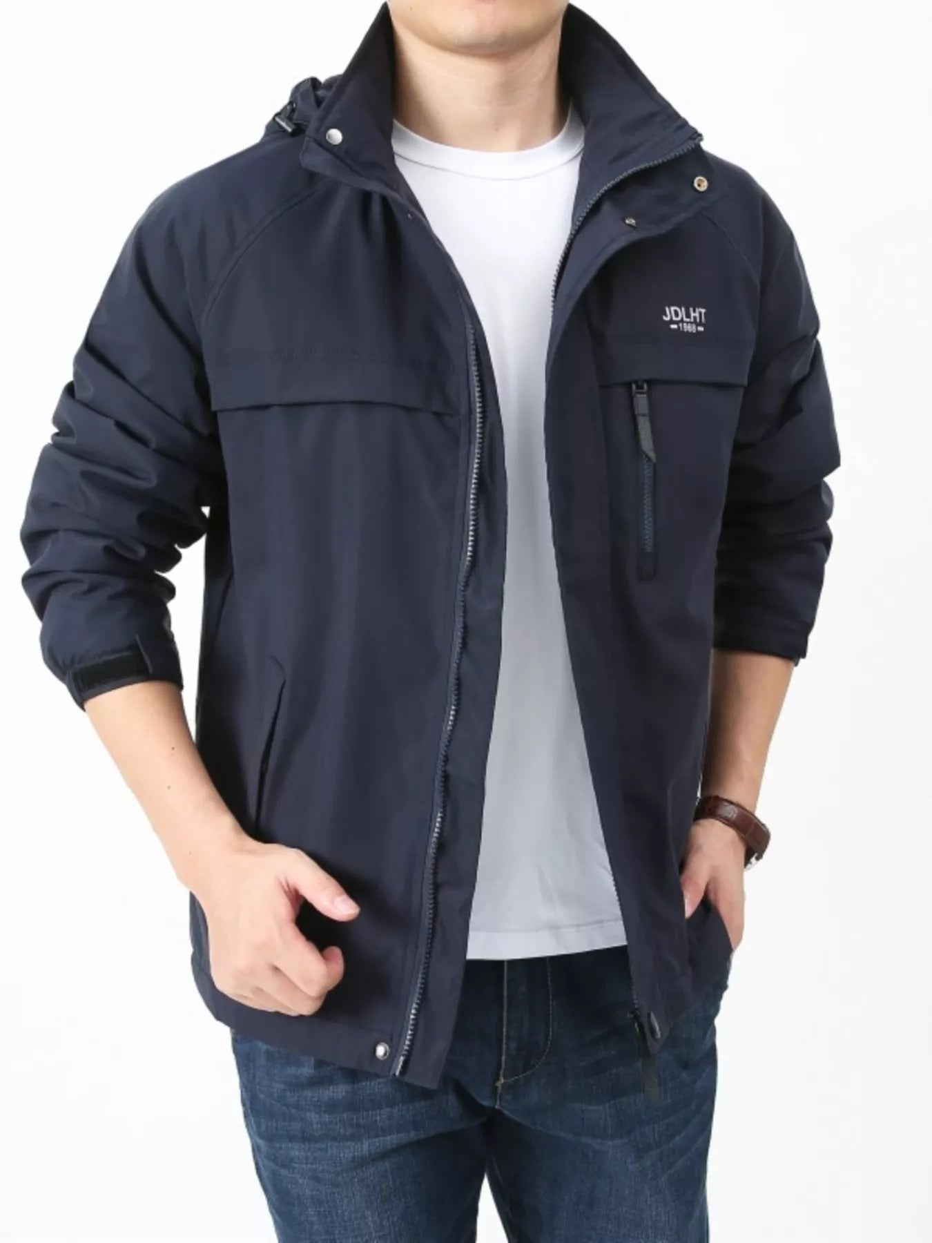 Men's Plus Size Zip Up Windproof Hooded Jacket