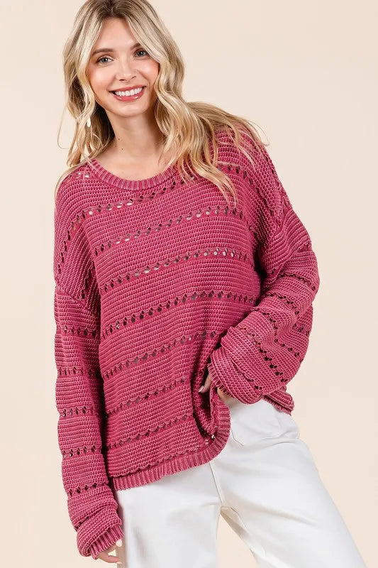 Mittoshop Openwork Round Neck Drop Shoulder Sweater