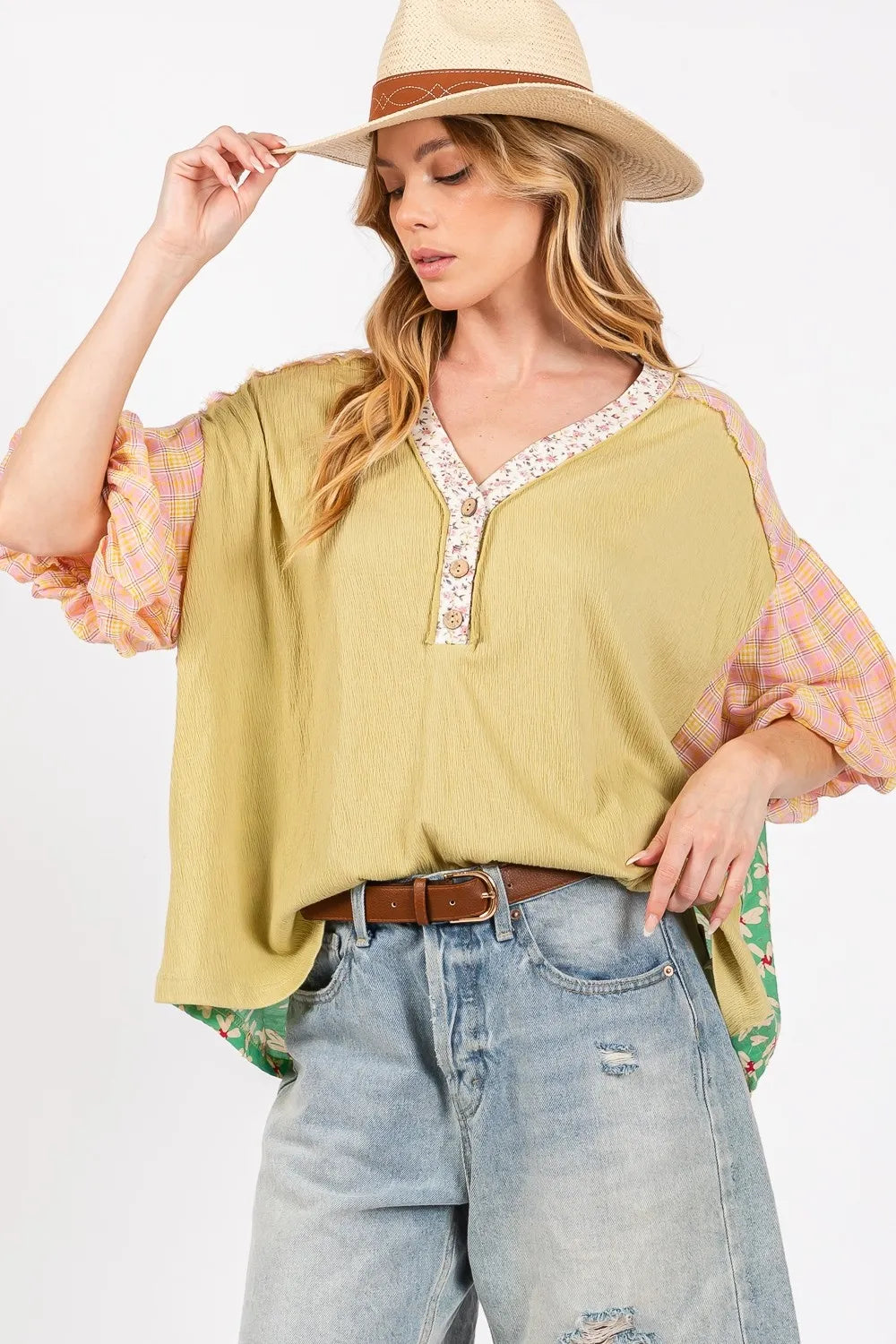 SAGE + FIG Full Size Color Block Bubble Sleeve Top Plus Size