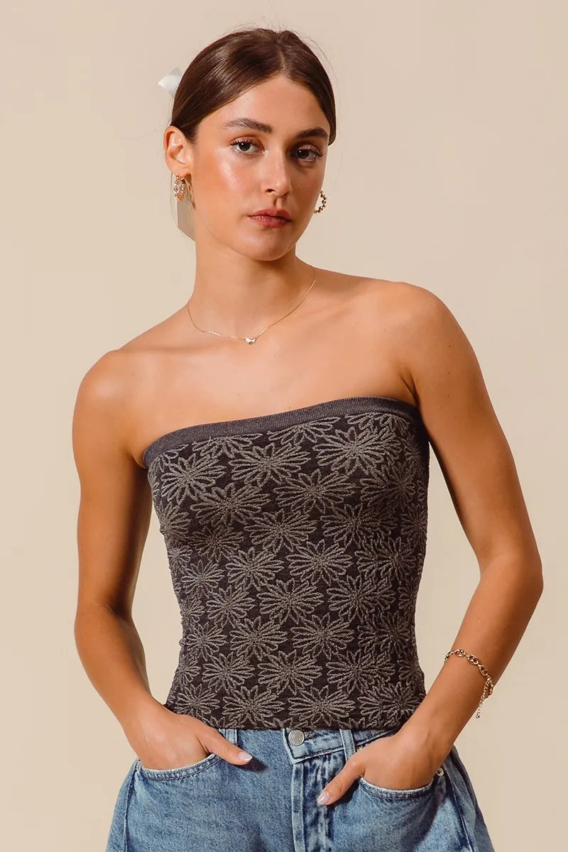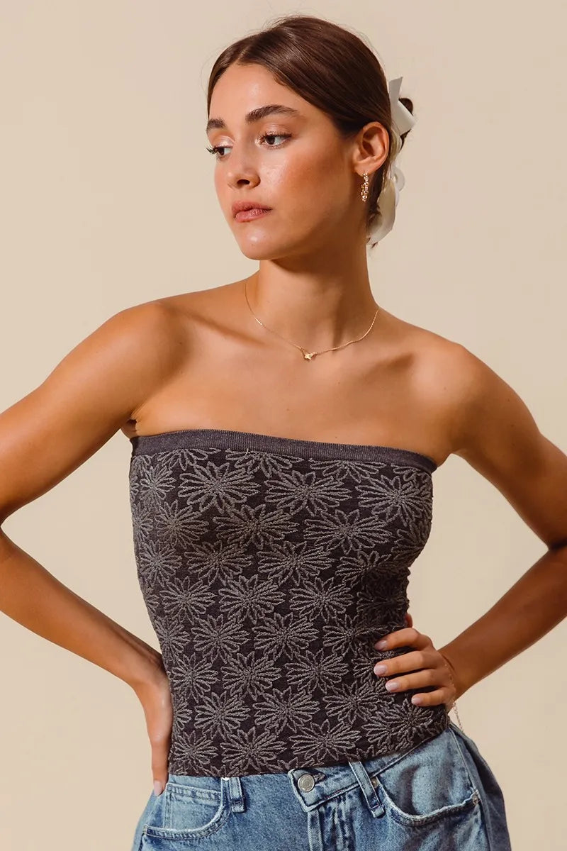 SO ME Jacquard Floral Two Tone Seamless Tube Top